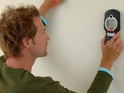 - Использование детектора. Современные детекторы скрытой проводки определяют кабели на глубине до 5-7 см. Проведите прибором по стене в радиусе 30 см от планируемого места сверления.